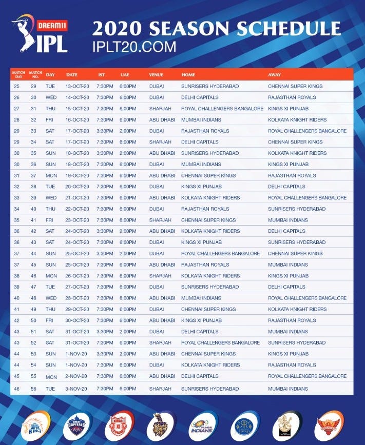 Ipl 2020 Schedule Uae Match List Pdf Ipl 2020 Updated Schedule New Ipl Time Table Ipl Cricket