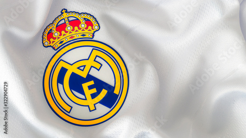 London Uk February 15 2019 Illustrative Editorial Of A Macro Close Up Of A Soccer Jersey On The Football Club Real Madrid Logo Editorial Photo Image Of Club Emblem 139931371