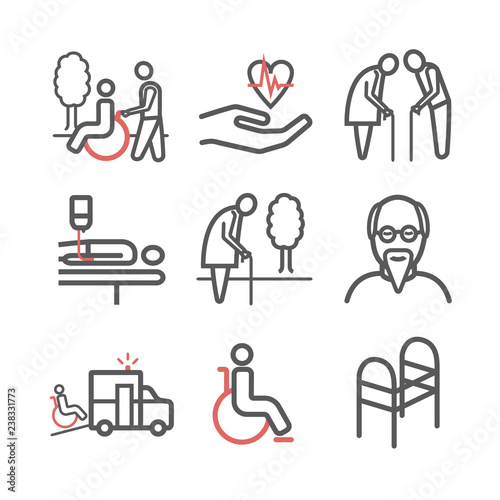 Elderly Services Line Icons Set Care Help And Accessibility Disabled People Vector Illustration Buy This Stock Vector And Explore Similar Vectors At Adobe Stock Adobe Stock