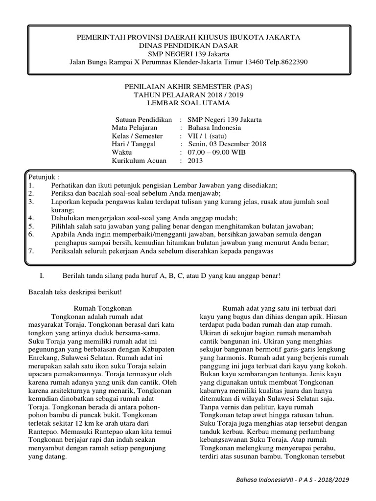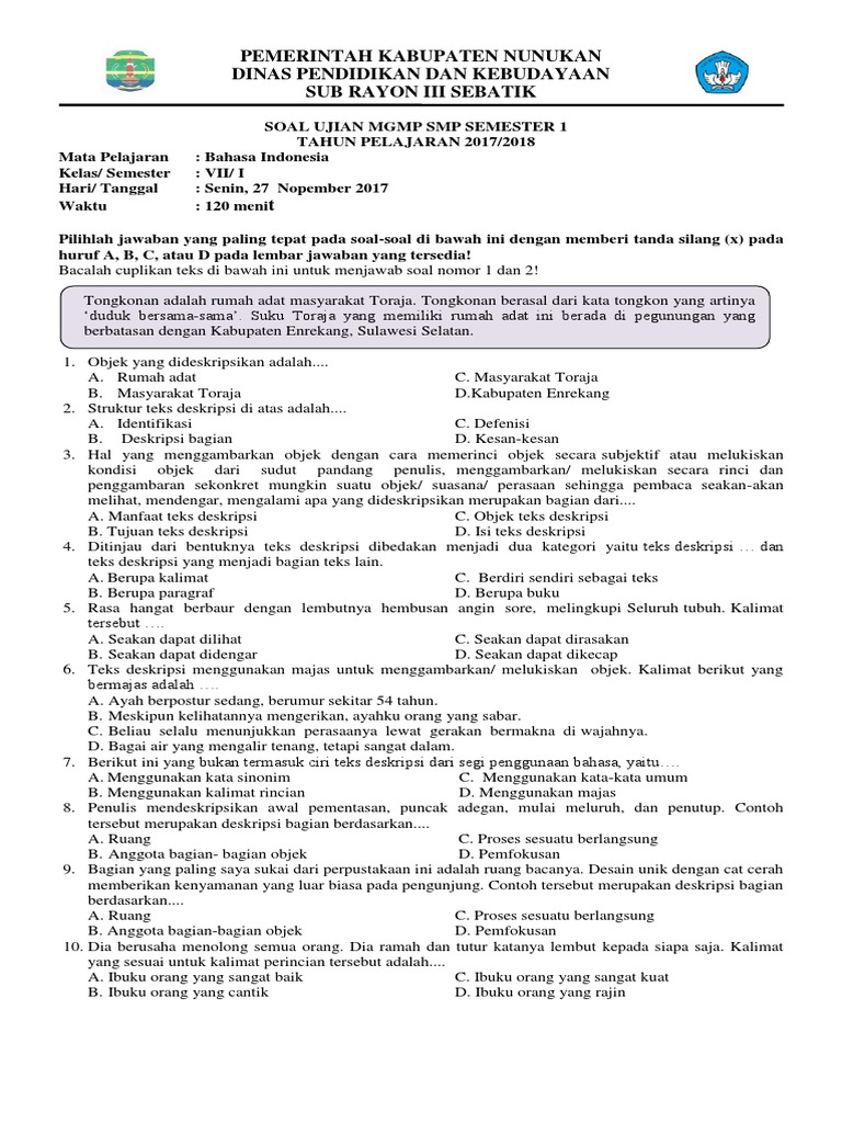 Soal Dan Kunci Jawaban Pas Bahasa Indonesia Smp Kelas 7 Kurikulum 2013 Tahun Pelajaran 2019 2020 Didno76 Com