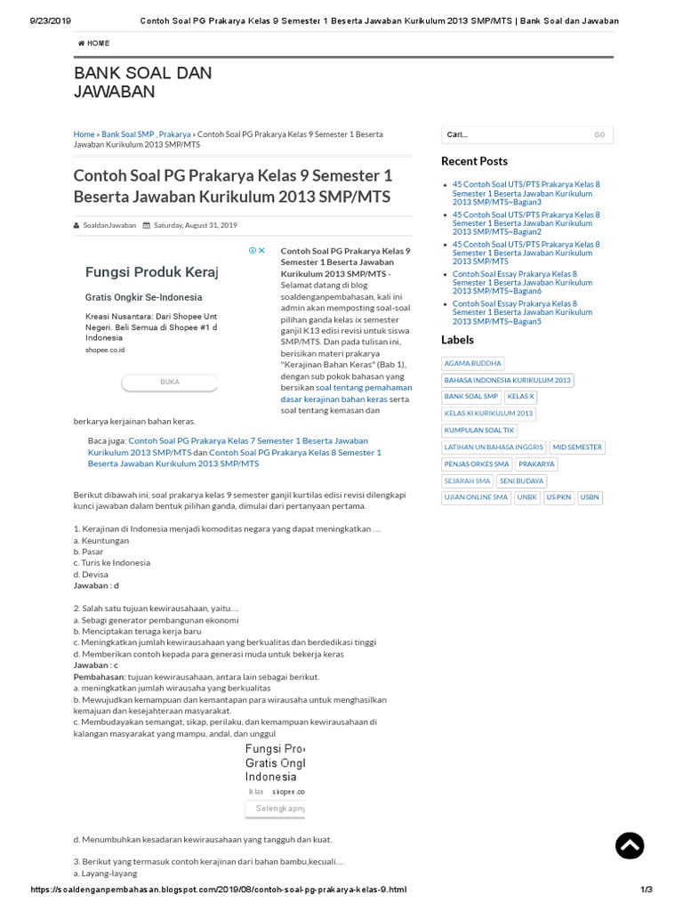 Kunci jawaban kelas 9 prakarya halaman 23. Bacalah dengan saksama cerita tersebut. Tempelkan cerita pendek tersebut pada sebuah karton ukuran a3. 1 komentar on kisi kisi soal dan kunci jawaban pas prakarya smp kelas 9 semester ganjil unknown march 9 2020 at 829 am soal prakarya ujian sekolah kisi2dan jawaban nya ada.