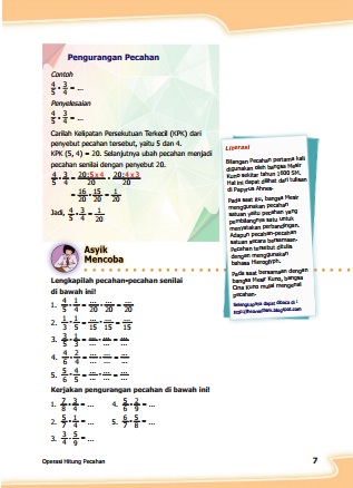 Kunci Jawaban Matematika Kelas 5 Halaman 7 Melengkapi Pengurangan Pecahan Senilai Youtube
