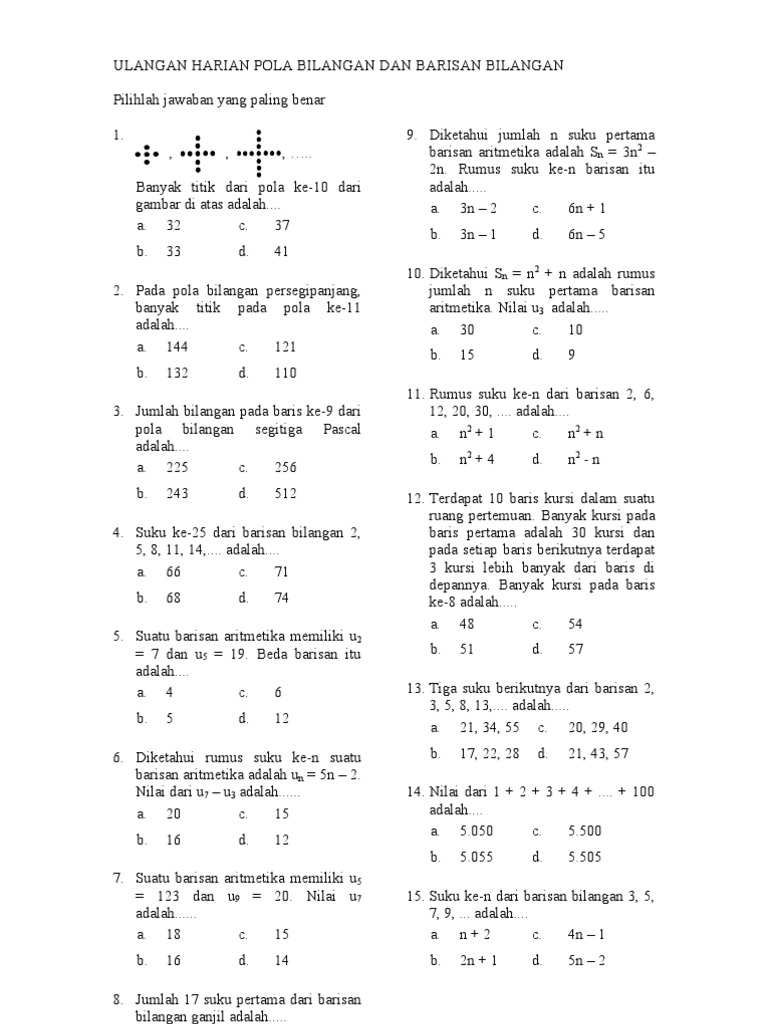 Kunci Jawaban Soal Smp Kelas 7 8 9 Materi Pola Bilangan Tvri Kamis 4 Juni 2020 Tribun Pontianak