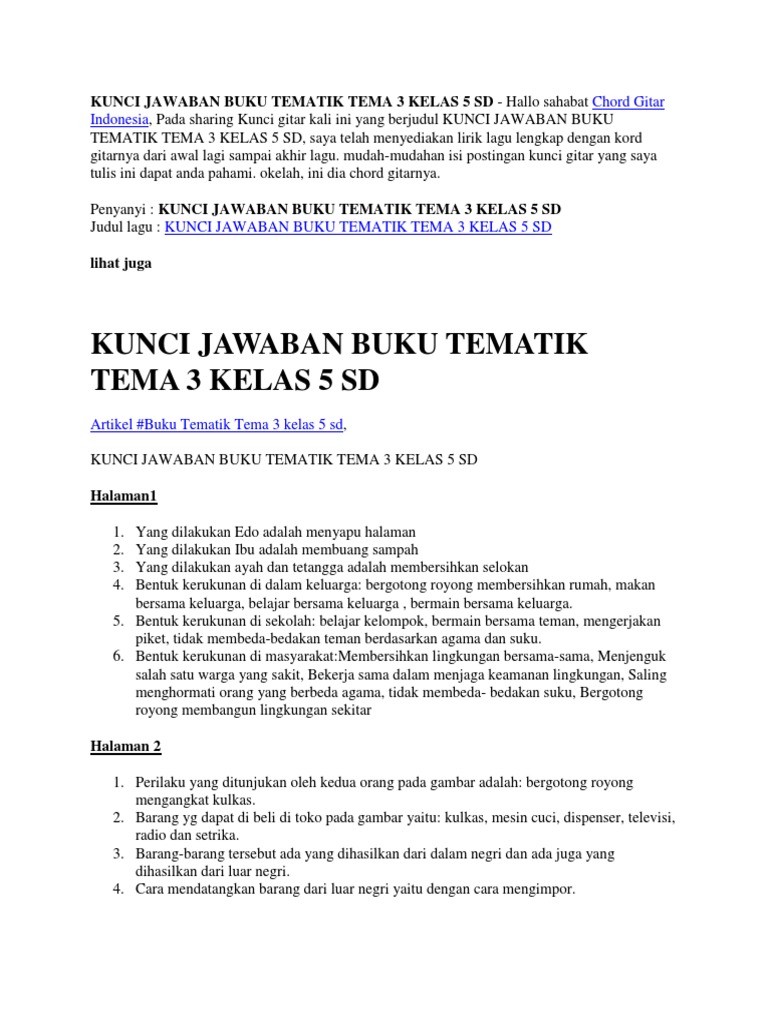 Kunci Jawaban Buku Tematik Kelas 5 Tema 3 Makanan Sehat Kurikulum 2013 Ruang Edukasi