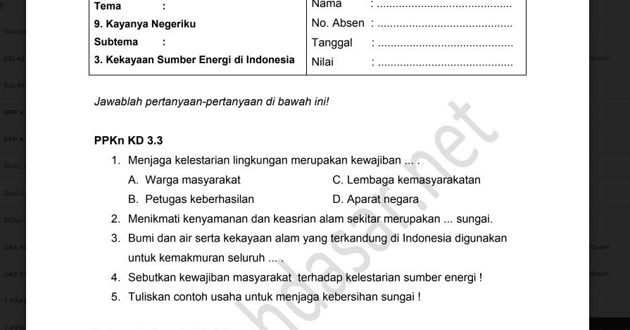 Soal Tematik Kelas 3 Tema 1 Subtema 1 Semester 1 Dan Kunci Jawaban Teori Dan Soal