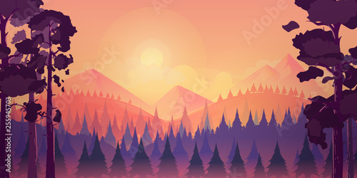 Sunset Landscape With Mountain And Forest Vector Illustration For You Project Buy This Stock Vector And Explore Similar Vectors At Adobe Stock Adobe Stock