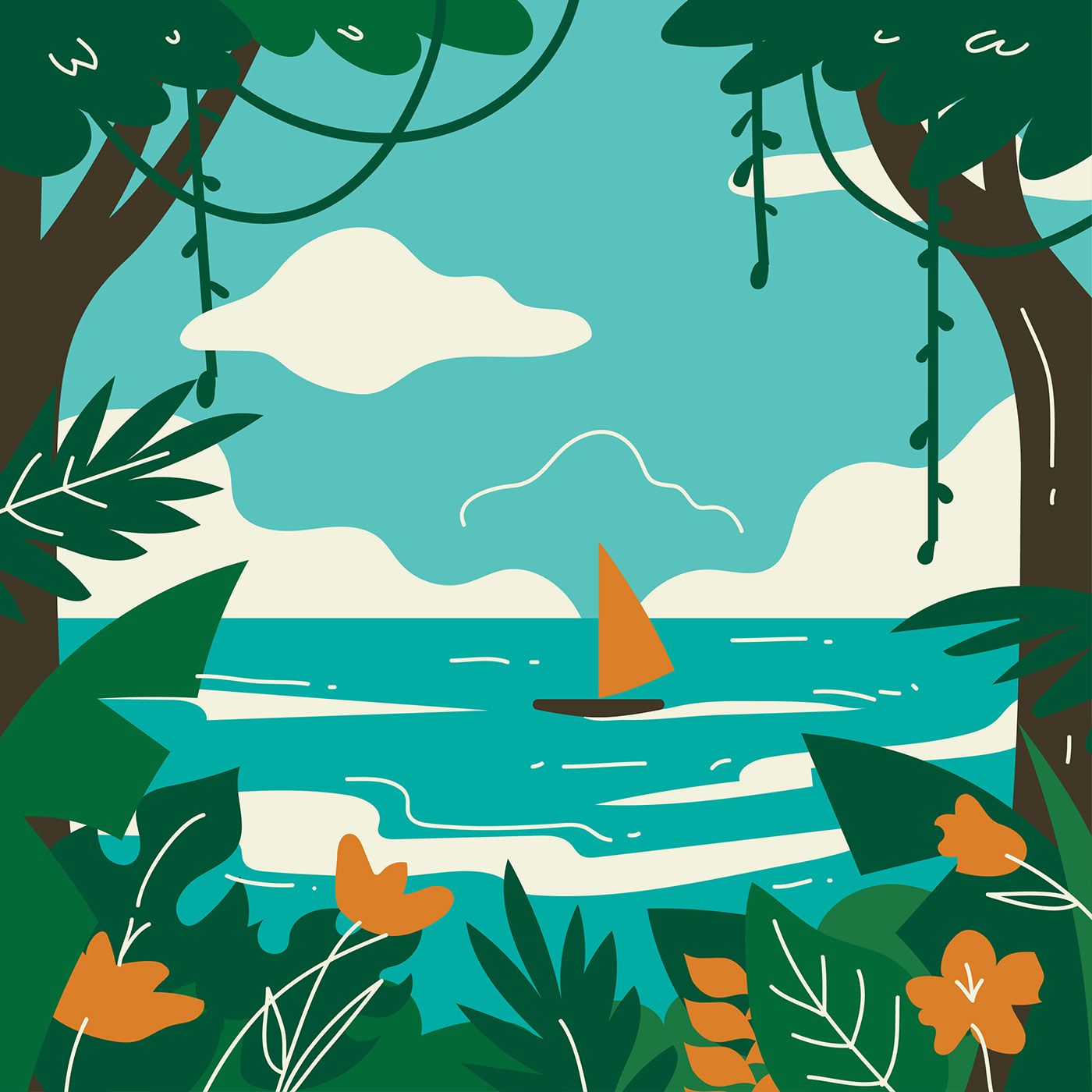 Download Premium Vector Of Green Botany Flat Forest Vector 1188952 In 2020 Botany Vector Illustration Design Vector