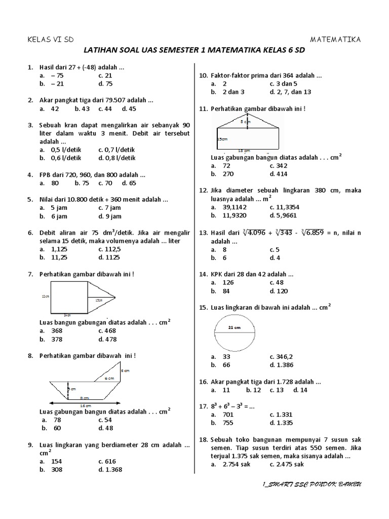 Soal Uas Matematika Kelas 6 Semester 1 Plus Kunci Jawaban Juragan Les