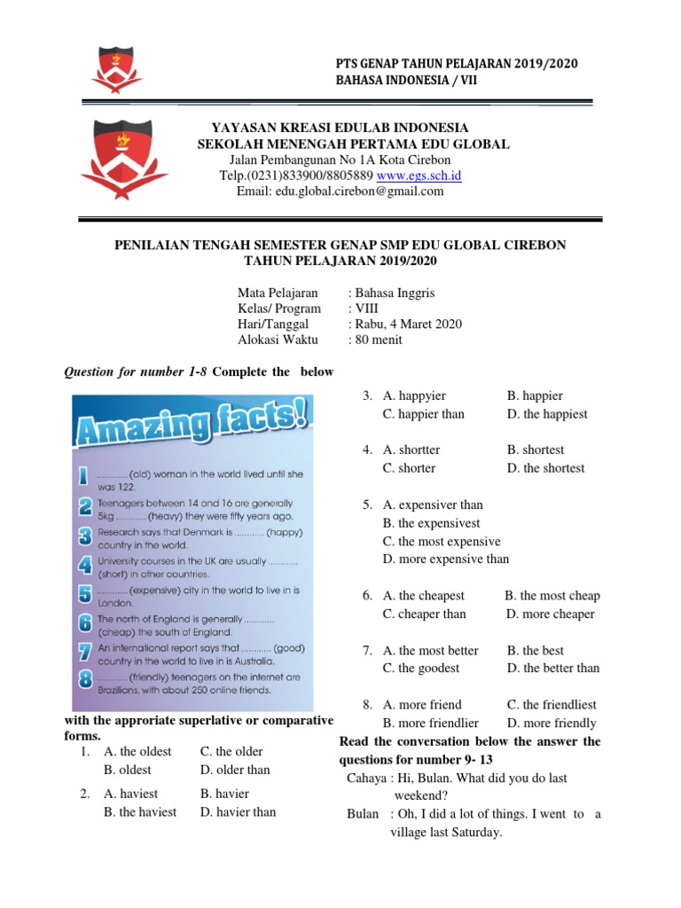 Lengkap Kumpulan Soal Uts Semua Mata Pelajaran Kelas 8 Smp Mts Semester Genap Terbaru Bospedia