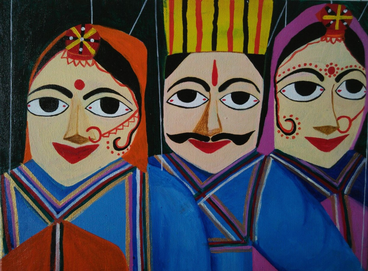 Original Art Rajasthani Women Painting By Esha Kohar Figurative Artwork On Acrylic On Canvas Bestcollegeart