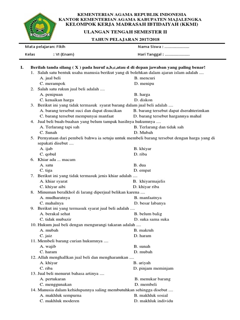 Manusa Kertajati Majalengka Kumpulan Soal Latihan Pilihan Ganda Dan Esay Mata Pelajaran Fiqih Kelas Xi Sebelas Bab I Tentang Jinayat Di Sertai Dengan Lembar Kunci Jawaban Dan Pembahasannya Selamat Mencoba