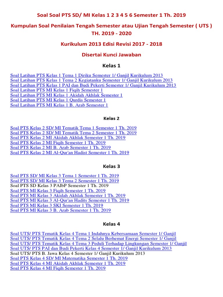 Soal Uts Pts Pai Semester 2 Kelas 5 Sd Mi Tahun Ajaran 2019 2020 Sekolah Dasar Islam