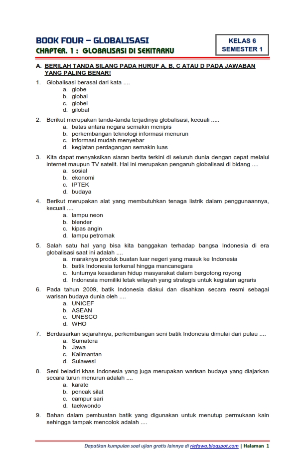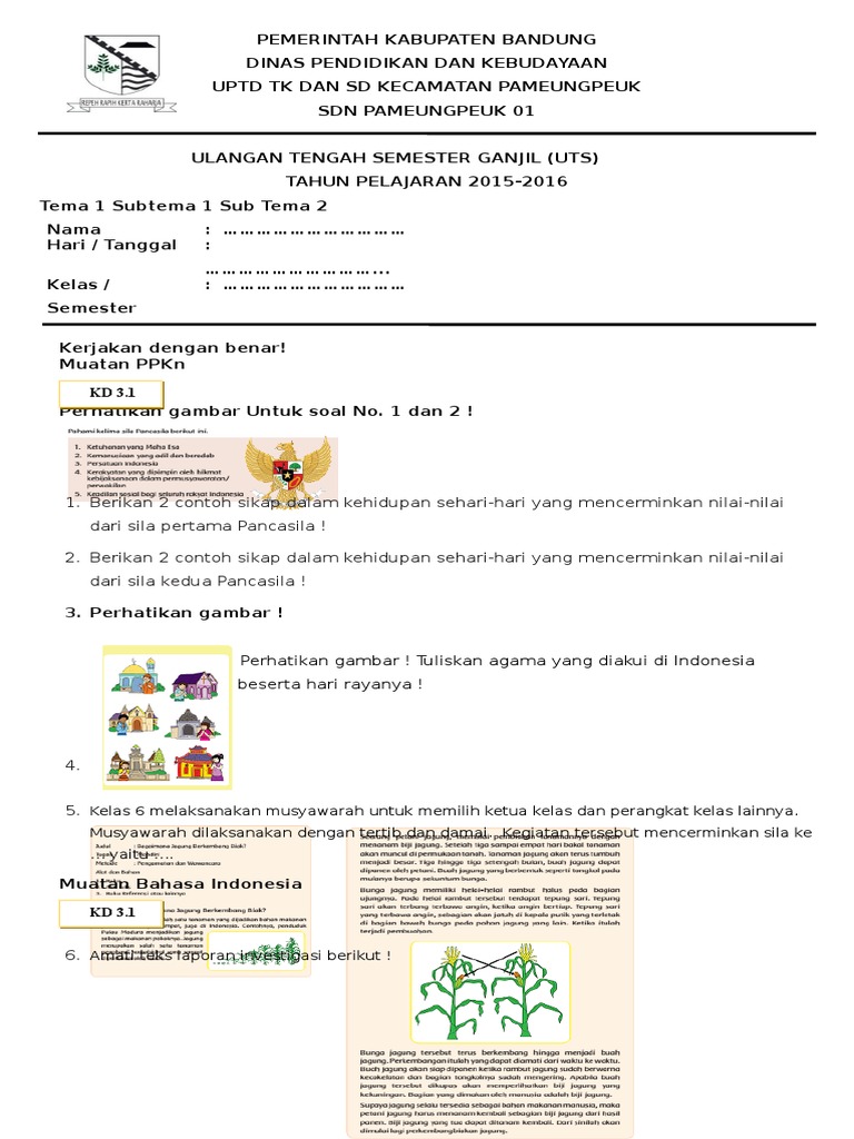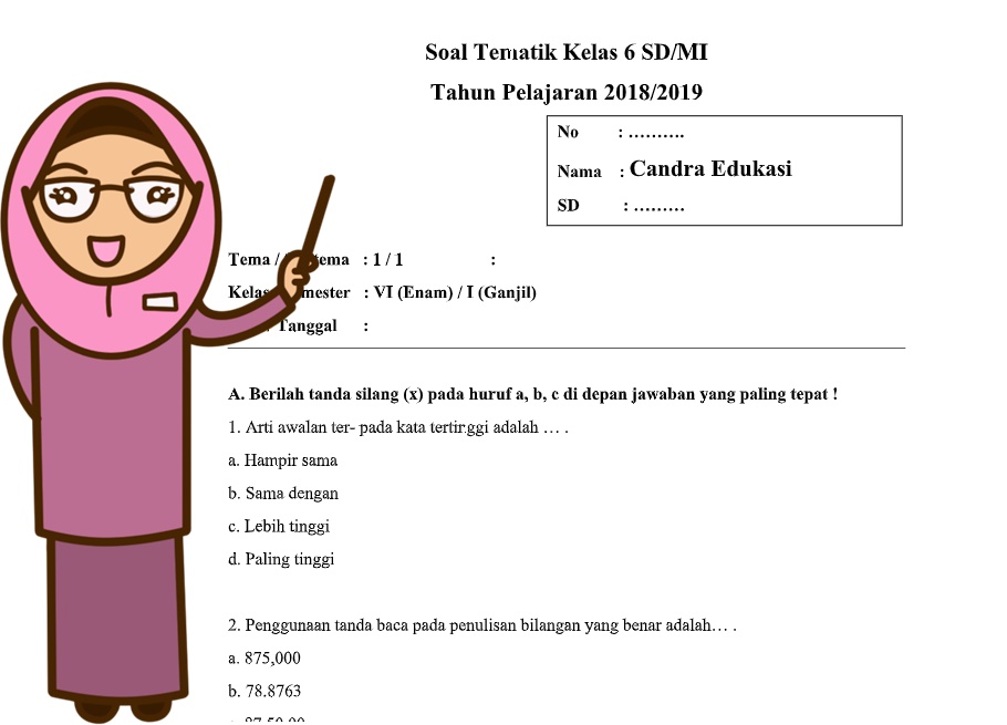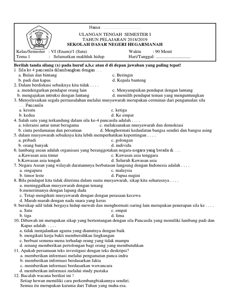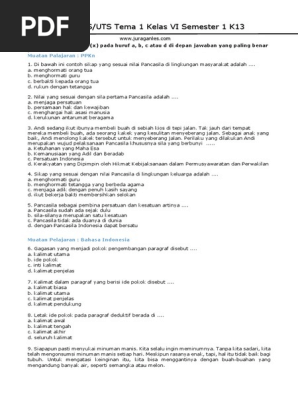 Latihan Soal Dan Kunci Jawaban Pas Kelas 6 Sd Mi Tema 1 Pendidikan Kewarganegaraan Pendidikan Kewarganegaraan
