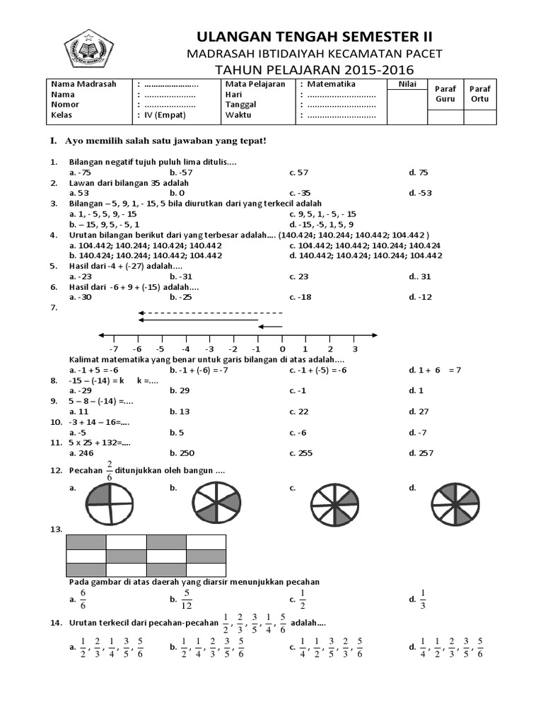 Soal Pts Uts Matematika Kelas 4 Semester 2 K13 Tahun Ajaran 2018 2019 Juragan Les