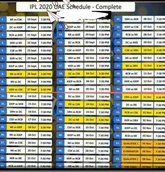 Ipl 2020 New Schedule Time Table 13th Indian Premier League Uae All New Job Circular