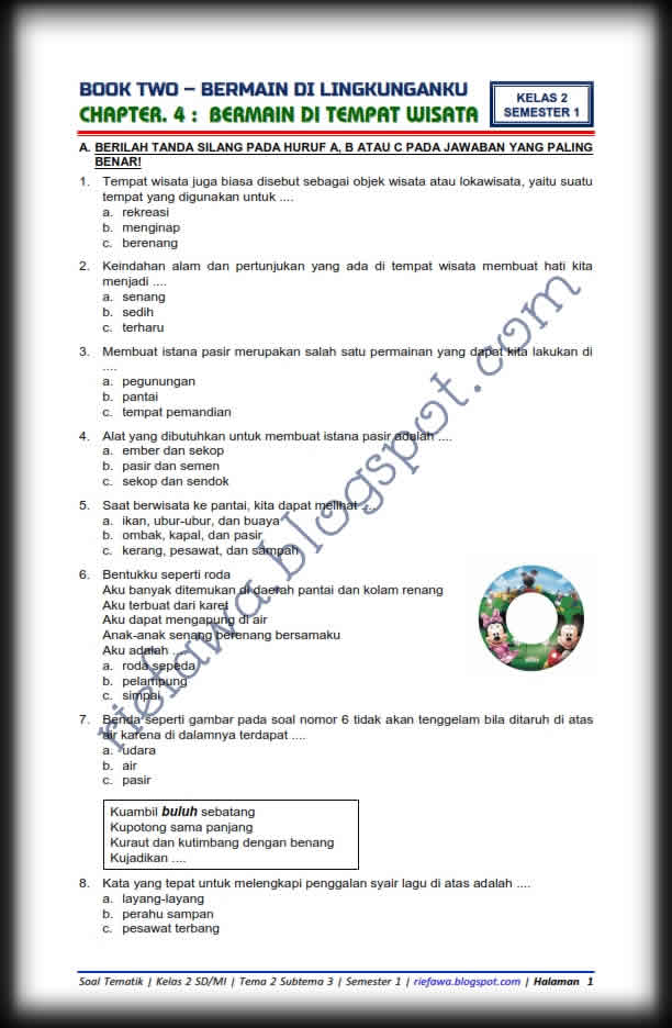 Soal Tema 6 Kelas 1 Sd Subtema 2 Lingkungan Sekitar Rumahku Dan Kunci Jawaban Bimbel Brilian