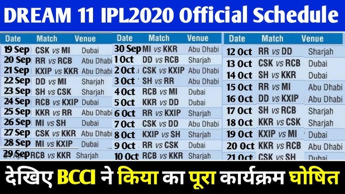 Full Schedule Fixtures Start Date Time Table Match Start Date Dream 11 Ipl 2020 Match Schedule News Chant
