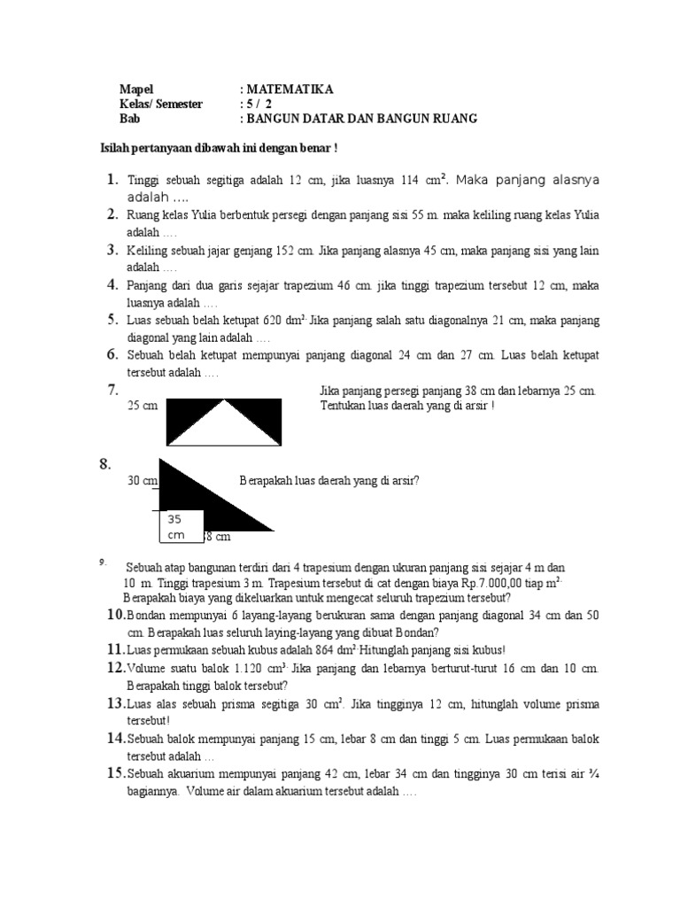 Download Soal Dan Kunci Jawaban Pts Uts Matematika Kelas 5 Semester 2 Sd Mi Kurikulum 2013 Sdn Sobang 2